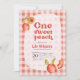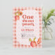 The playful yet elegant typography announces "One Sweet Peach," setting the perfect tone for a joyful celebration. Whether you're planning an indoor gathering or an outdoor picnic-style party, this invitation beautifully captures the sweetness of a first birthday.