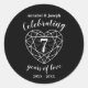 Onyx célébrant 7 ans d'autocollants d'anniversaire d'amour. Graphiques simples en cristal effet de pierre en noir et blanc, 7ème Anniversaire Mariage autocollants ronds. Customisez avec vos propres détails de fête du septième anniversaire du mariage. Le 7e anniversaire est associé à la pierre à gemme en onyx noir et le coeur symbolise l'amour. Graphiques et design par Sarah Trett pour www.mylittleeden.com sur zazzle.