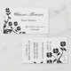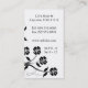 Faites la promotion de votre entreprise grâce à ce design carte de visite séduisant, avec un arrière - plan blanc simple orné de fleurs onyx sur une vigne. Le texte personnalisable vous permet de modifier les polices, de modifier les couleurs et les tailles du texte pour mieux refléter votre entreprise. Convient aux commerces de détail, de consultation et d'art.