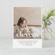 Une simple invitation à l'anniversaire avec votre propre photo et les mots "onze" au-dessus, avec un coeur. Vous pouvez modifier tout le texte ainsi que la couleur du texte et du coeur.