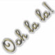 Autocollant vinyle taillé sur mesure avec une image de l'expression "Ooh La La!" en écriture or avec ombre noire. Voir l'ensemble de la collection Cancan Sticker dans les INVITATIONS | Section Stickers & Étiquettes.