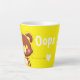 This bright yellow Oops! teddy bear latte mug features an adorable bear illustration with a playful message that adds instant cheer to your coffee or tea time.