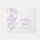 Joli couple d'oiseaux en ligne dessin graphique d'une cage d'oiseau ouverte accrochée à un arbre de printemps fleuri avec des coeurs. Mariage moderne chic design moderne partie de la cage d'oiseau romantique mariage fixe ensemble. Jolies teintes pastel violet et rose doux. Modifiez ce tapis de porte avec votre nom et vos dates de mariage. Idéal si vous avez une réception de mariage dans votre maison ou pour offrir comme cadeau aux jeunes mariés. Dessin unique et design par Sarah Trett.