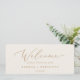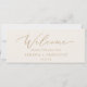 Cet en-tête de bienvenue en métal doré délicat et suspendu est parfait pour un mariage moderne. Le design minimaliste romantique présente une belle et élégante typographie de champagne jaune doré sur un arrière - plan de crème d'ivoire au look épuré et sobre. La carte s'imprime à l'avant et à l'arrière (double face). Veuillez consulter la collection pour connaître les cartes de classement des sièges du numéro de table de coordination.