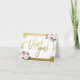 Carte de remerciement avec lettrage à la main brossé, fleurs aquarelles roses élégantes et feuille dorée fausse. La feuille dorée fausse est imprimée à plat.