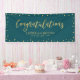 Cette bannière événementielle présente des confettis en or et des typographies "Félicitations" sur un arrière - plan vert turquoise. Cette bannière de félicitations est la décoration parfaite pour une fête chic moderne. Vous pouvez customiser le nom et le texte en bas de la bannière pour vos événements.(Anniversaire, Retraite, Anniversaire, Graduations ou toute autre célébration)