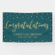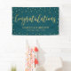 Cette bannière événementielle présente des confettis en or et des typographies "Félicitations" sur un arrière - plan vert turquoise. Cette bannière de félicitations est la décoration parfaite pour une fête chic moderne. Vous pouvez customiser le nom et le texte en bas de la bannière pour vos événements. (Anniversaire, Retraite, Anniversaire, Graduations ou autres célébrations)