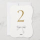 Chic et chic. Ce numéro de table mariage est composé d'une police contemporaine en faux or et d'un ruban d'aquarelle blanche, contre un arrière - plan blanc cassé. La conception avant est répétée à l'arrière pour une vue facile de tous les angles à la table.