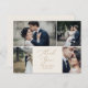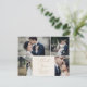 Cette carte de remerciement délicate avec un modèle pour 4 photos, dorée et crème, est parfaite pour un mariage moderne. Le design minimaliste romantique présente une typographie élégante et charmante de couleur jaune doré champagne sur un fond crème ivoire avec un aspect propre et simple. Personnalisez le verso de la carte avec vos noms et un message de remerciement. Vous pouvez également laisser la section du modèle de message de remerciement vierge pour écrire une note personnalisée sur chaque carte à la main après leur arrivée. Ces cartes peuvent être utilisées pour un mariage, une fête de fiançailles ou tout autre événement spécial.