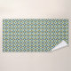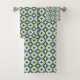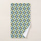 Ce motif moderne de la moitié du siècle comporte l'or et des formes bleues.