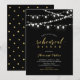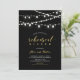 Célébrez votre jour spécial avec ce modèle d'invitation de répétition de dîner de mariage moderne et élégant. Ce design présente de belles guirlandes lumineuses avec un thème de couleur or et noir.