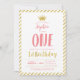 Célébrez une journée spéciale avec cet or moderne & Coral rose premier anniversaire Invitation! Ce design présente un joli graphisme de couronne et une typographie de parties scintillant d'or.
