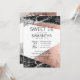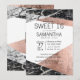 Moderne, élégant et chic faux imprimé rose or et noir et blanc en marbre coupé geo, Sweet 16 anniversaire invitations fêtes de fête. Ce design classique et sophistiqué est parfait pour une fille d'anniversaire classe, tendance et élégante. Personnalisez avec votre propre message sur l'avant et un monogramme customisé sur l'arrière. Toute la conception d'impression photo.