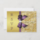 Élégantes cartes RSVP plates personnalisées dorées et violettes - pour tout événement - avec de belles paillettes, des nœuds et des rubans imprimés brillants et de jolis bijoux de strass bling sur un fond dégradé doré glamour. REMARQUE : Ce sont des graphiques imprimés plats - aucune partie en relief. Si vous avez besoin d'aide pour personnaliser votre produit, veuillez me contacter via ma boutique. Je serai ravi de vous aider.
