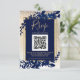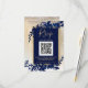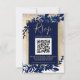Une typographie dorée jaune moderne, chic et élégante Floral marine bleu Noël mariage rsvp hiver avec feuillage en feuille d'aquarelle bleue peinte à la main sur un élégant arrière - plan doré avec neige blanche et flocons de neige, ajoutez votre code qr.