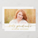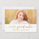 Carte photo moderne branché invitant votre famille et vos amis à la fête de remise de diplômes de votre fille. Simple Gold Foil écriture manuscrite Script Graduation Party Invitation pour 2015. Design par Elke Clarke © Visitez notre boutique www.zazzle.com/monogramgallery* pour plus de design et de styles. Ajoutez votre propre photo et texte. Une simple couche de texte de typographie de feuille d'or (effet photo imprimé) avec les mots "Graduate 2015". Remplacez l'exemple de photo par le vôtre. Couleurs blanches et or. Autres styles et couleurs disponibles.