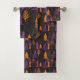 Habillez votre salle de bains pour Halloween avec ces serviettes comportant un motif des arbres à feuillage persistant de style tiré par la main dans des couleurs de Halloween : orange, pourpre et gris de charbon de bois sur un fond noir est parfait pour ajouter un contact d'acclamation de Halloween à votre jour.