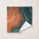 Une oeuvre abstraite numérique ressemblant aux motifs naturels d'une géode ou d'une pierre d'agate, avec de riches tons terreux d'orange turquoise profonde et brûlée, accentuée de veines dorées chatoyantes. Les textures fluides et stratifiées créent un sens de profondeur et d'élégance, évoquant une esthétique luxueuse et organique.