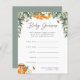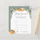 Laissez les invités du baby shower prendre leurs meilleures devis à la date de naissance et l'heure, le poids et la longueur du bébé! Placez une cheminée à l'entrée de l'événement, passez-les ou laissez-en une à chaque endroit. Fait une tenue de conservation amusante pour la future maman aussi, lorsqu'il est compilé dans une jolie boîte ou un classeur. Conçu pour s'adapter à notre collection de baby showers Orange Blossom Honey, ce design d'inspiration naturelle estivale présente un feuillage vert aquarelle, un pot de miel et de minuscules illustrations d'abeilles domestiques. Personnalisez avec la mère le nom et la date de baby shower de l'être le long du bas.