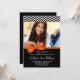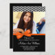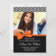 Orange Bow Chevron Photo Graduation Faire-part Invitations. Un élégant motif en chevron noir et blanc avec un ruban orange. Moderne et mignon. Parfait pour un baccalauréat, un diplôme d'études supérieures ou une fête de fin d'études. Les dessins sont des illustrations et des graphiques imprimés à plat - PAS RÉELLEMENT RIBBON. Pour redimensionner et positionner votre photo, cliquez sur le bouton "CUSTOMISER IT".