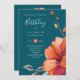 Invitation d'anniversaire recto verso avec de belles teintes orange brûlée et turquoises, fleurs et feuilles.