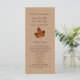 Sur un arrière - plan de couleur burlap, une grande feuille d'érable orange monogrammée accentue ce programme de mariage.