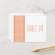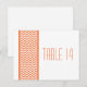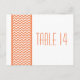Carte postale Chevron Border Table Number, chic et moderne, avec une simple bordure en chevron motif orange et blanc. Ce design élégant donnera le ton à un mariage élégant. Facile à customiser, il suffit d'ajouter le ou les numéros de table appropriés dans le champ de texte fourni. Cliquez sur "Customiser" pour trouver d'autres options de personnalisation.