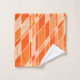 Ce kit de serviettes a un design géométrique dans les tons orange et blanc. Amusant et lumineux.