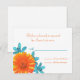 Carte de réponse personnalisée avec un thème turquoise et orangé à fleurs.