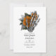 Whimsical vintage floral gothique squelette main faire-part de mariage dans les accents d'orange et de noir personnalisable à votre événement spécifique. Idéal pour un thème ou un mariage de jardin. Le code QR au verso dirige vers votre site mariage où les gens peuvent en savoir plus et rsvp.