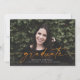 Ce faire-part d'obtention de diplômes avec saignement complet comporte le mot "diplômé" écrit en écriture orange sur le devant. Il y a de la place pour le nom du diplômé, l'année de classe et l'école. Le dos de la carte peut être utilisé pour un message personnel ou les détails de l'invitation de la fête de remise de diplômes.