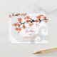 Fusion de fleurs d'hibiscus orange Tropical Chic et spirales grises / vagues bouclées, mariage moderne chic d'été / de destination, carte postale d'annonce de save the date.