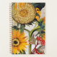 Des tournesols jaunes-orangés peints sous différents angles, dont l'un va à la graine, une idée artistique pour tout jardinier amateur de fleurs. > Impression magnifique d'une aquarelle de tournesol par l'artiste Harriet Brock. > Personnalisable : Ajoutez votre propre nom ou texte personnalisé.
