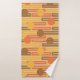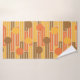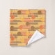 Cet ensemble de serviettes a un design moderne du milieu du siècle de rectangles répétitifs en orange, or et marron avec des cercles superposés.