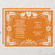 Pape orange Picado inséparables programme plié fiesta mariage. Il présente deux lovebirds blancs et un coeur d'amour avec le mot amour et fleurs, feuille et petits points sur le rouge sur la couleur orange. Ce style d'art folklorique mexicain à mariage fleuri design modèle est entièrement personnalisable. Utilisez seulement ce type de papier comme il se plie bien.