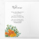 Beaux programmes de mariage orangé et rose à fleurs avec une abondante verdure. Parfait pour un thème fleuri ou un mariage blanc traditionnel au printemps ou en été. Customisez la couleur et le texte pour faire de ce programme de mariage votre propre!