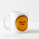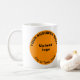 Marque d'affaires en forme orange ronde sur tasse personnalisable. Customisez-le en téléchargeant votre logo d'entreprise, en tapant votre nom d'entreprise, ville ou ville et état. Vous pouvez l'inclure dans vos produits promotionnels, cadeaux ou cadeaux offerts à vos clients ou clients, une stratégie de marketing pour annoncer votre entreprise ou promouvoir votre marque. Tasse personnalisable que vous pouvez utiliser pour développer la sensibilisation de marque. Mug pour votre entreprise alimentaire comme café, diner ou restaurant. Veuillez vérifier l'apparence des côtés avant et arrière après avoir téléchargé le logo et tapé des textes. Si l'apparence vous plaît, vous pouvez passer votre commande maintenant. Si vous avez besoin de redimensionner et repositionner le logo et les textes, s'il vous plaît ajuster dans l'outil de conception.