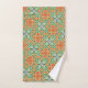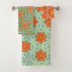 Cet ensemble de serviettes de bain abstraites d'inspiration orange est la meilleure façon d'ajouter un peu de couleur à une salle de bain blanche.