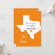 Réunissez toute la famille pour la réunion annuelle avec cette invitation en forme d'état du Texas. Inclut l'espace pour la date, l'heure et l'emplacement de votre grand événement. Inclut l'espace pour la date de votre grand événement. Disponible en rouge Tech, marron Aggie, orange brûlé Longhorn, vert Aigle, bleu royal, orange Miner et violet grenouille cornée. Personnalisable en modifiant la couleur de la forme, du coeur ou du texte de l'état. Produits correspondants disponibles, y compris d'autres options d'invitation.