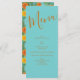 Orange & Turquoise Aqua Peony & Mariage Rose Menu
