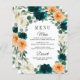 Cartes à la carte orange Turquoise Turquoise Blue Boho Mariage - disposent d'un élégant eucalyptus et d'une couronne de verdure décorée d'ivoire/blanc, d'orange et de fleurs turquoises/turquoise profondes. Visualisez la collection correspondante sur cette page pour trouver des produits de coordination pour compléter le thème avec cette conception.