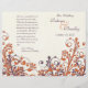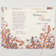 Le texte sur ce brûlé orange, aubergine violet et ivoire automne abstrait programme de mariage floral est entièrement personnalisable. Il est destiné à être plié vers le milieu lorsque vous le recevez. Pour modifier le texte, utilisez l'option personnaliser. Pour les modifications plus étendues du texte, telles que les modifications de la police, de la couleur de la police, de la taille de la police ou de l'emplacement du texte, utilisez l'option personnaliser. De plus, une fois votre texte finalisé, si vous devez le déplacer un peu, vous pouvez le faire en utilisant l'option personnaliser. Cet automne, le programme abstrait de fêtes spéciales florales est actuellement customisé comme un programme de mariage, mais il fonctionnerait bien comme un programme pour toute autre occasion spéciale. Vraiment, cela ferait même un très beau bulletin d'église avec des changements au texte. Laissez votre imagination vous mener. Il est recommandé que ce soit acheté seulement comme une finition mate standard de 80lb. L'option papier 100lb est difficile à plier et n'est donc pas recommandée.