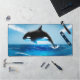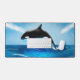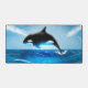 Cette illustration vivante d'une baleine à orques vous donnera vie à n'importe quel bureau ou espace informatique ! La baleine, parfois appelée l'épaulard, saute de l'océan. L'eau coule de la baleine et l'eau montre aussi le mouvement. Les couleurs bleues sont vives et font ressortir le noir et blanc de la baleine orque.