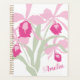Fleurs graphiques stylisées en cattleya d'orchidées rose dans les tons rose foncé, rose pâle, blanc et vert. Personnaliser avec votre propre nom lit actuellement Amelia. Image originale de Sarah Trett pour www.mylittleeden.com sur zazzle seulement.