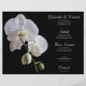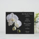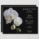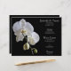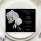 Faites savoir à vos invités sur quoi ils vont dîner avec la jolie Orchidée blanche sur le menu Mariage noir. Customisez-le avec les détails du repas que vous allez servir à votre brunch mariage, déjeuner, dîner de répétition ou réception matrimoniale en ajoutant la salade ou le premier plat, entrée ou deuxième plat et dessert ou troisième plat. Cet élégant menu mariage à fleurs personnalisé présente une photographie botanique d'une fleur d'orchidées de phalaenopsis blanc fleurie sur la tige avec un arrière - plan noir.