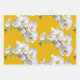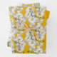 Papier d'emballage orchidée avec des tiges réalistes d'orchidées blanches, sur jaune doré. L'ensemble est livré avec trois feuilles, roulées - non pliées, avec des motifs floraux de différentes tailles. Cette enveloppe cadeau de haute qualité recouverte de fleurs exotiques et tropicales, fera une présentation étonnante pour les anniversaires ou les mariages. Des tiges courbes d'orchidées blanches avec de petits centres jaunes et des bourgeons verts.