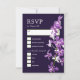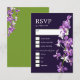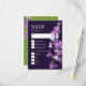 Cette carte RSVP pour orchidées dendrobium violet est parfaite pour un mariage élégant et moderne. La carte RSVP est conçue en utilisant un jeu de couleurs violet et vert. Pour encore plus de personnalisation de cette conception, après avoir cliqué sur le bouton "personnaliser" pour entrer vos informations, vous pouvez cliquer sur le bouton bleu de l'outil d'édition de conception en bas. Des articles correspondants sont également disponibles.