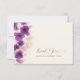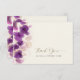 Quelques branches d'orchidées violettes, dessinées à la main dans l'aquarelle numérique et un style lâche et expressif, avec des décorations savoureuses qui rappellent un bouquet mariage, font de ce carte de remerciements mariage moderne, sophistiqué, élégant et chic. L'élégant script de calligraphie, dans la teinte d'or, rend ce design élégant encore plus élégant.