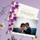 Quelques branches d'orchidées violettes, dessinées à la main dans l'aquarelle numérique et un style lâche et expressif, avec des décorations sveltes qui rappellent un bouquet mariage, font de ce carte de remerciements photo mariage moderne, sophistiqué, élégant et chic. L'élégant script de calligraphie, dans la teinte d'or, rend ce design élégant encore plus élégant.