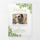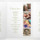 Célébrez et rappelez-vous la vie de vos proches avec notre programme mémorial funéraire personnalisé pliable. Chacun présente une gamme de photos, une nécrologie sincère, l'ordre du service, ainsi qu'un mot de remerciement. Notre design spécial est complété par une touche de feuillage vert aquarelle, ajoutant une touche artistique et naturelle à ce délicat témoignage de mémoire.